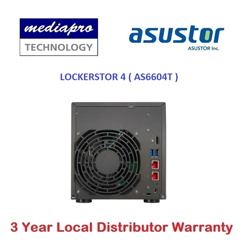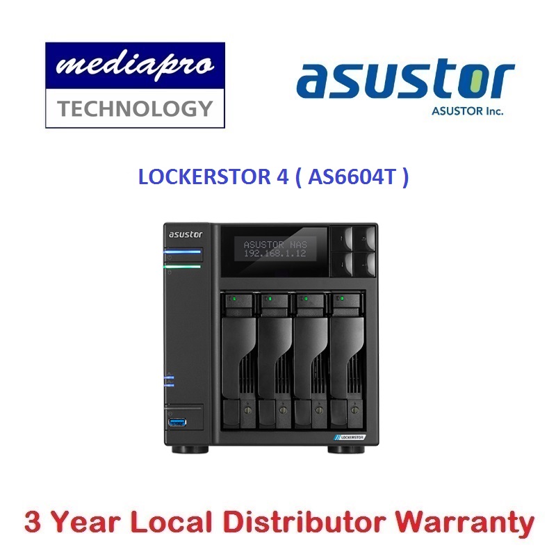 ASUSTOR AS6604T 4-Bay NAS with HDMI Output, Intel Celeron 2GHz Quad-Core Processor (burst up 2.70 GHz) LOCKERSTOR 4 ( without HDD ) - 3 Year Local Distributor Warranty
