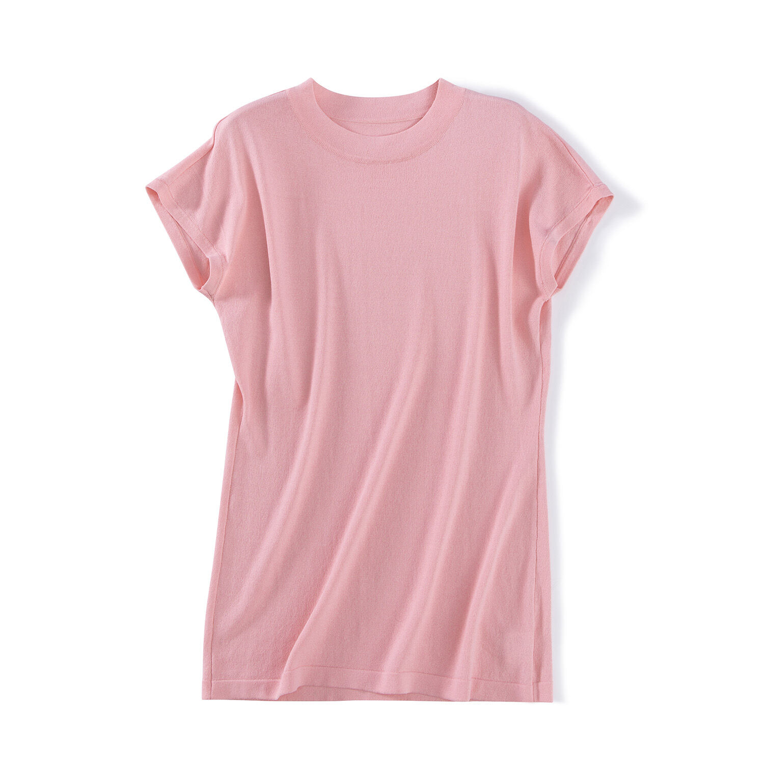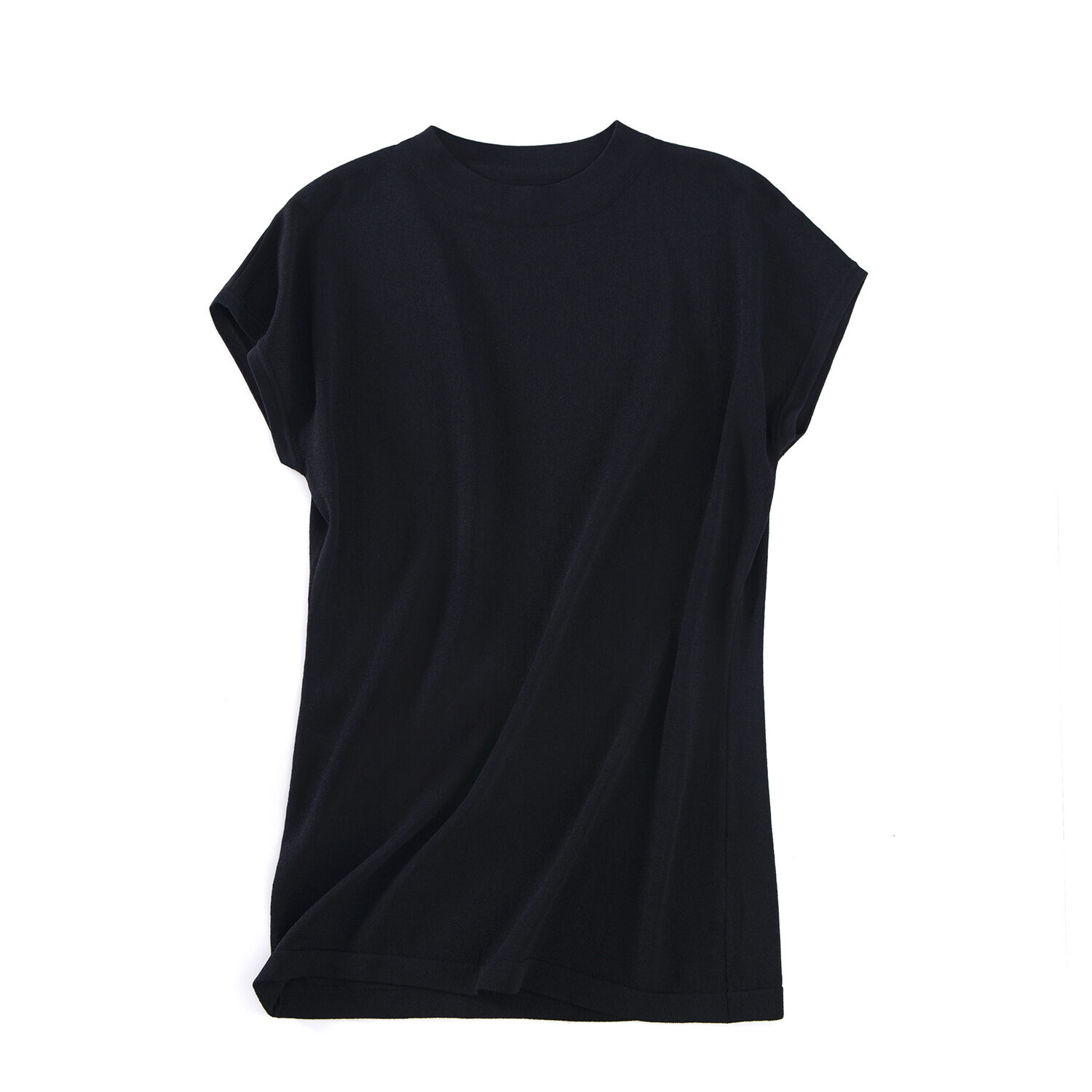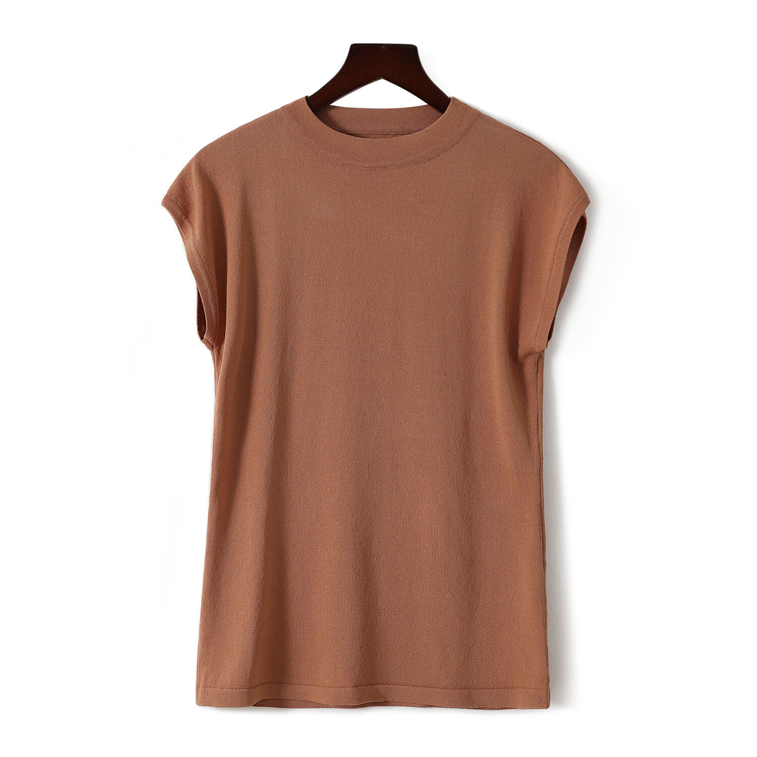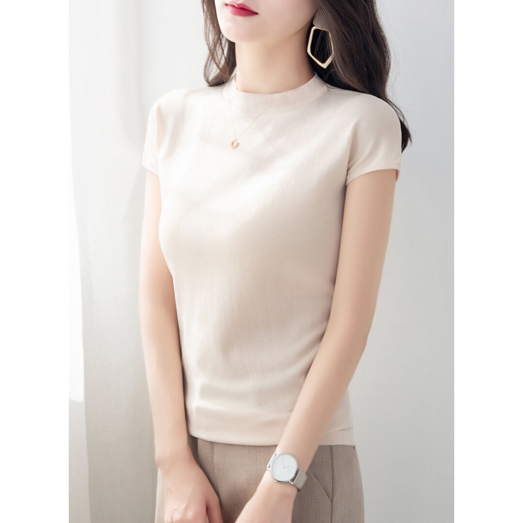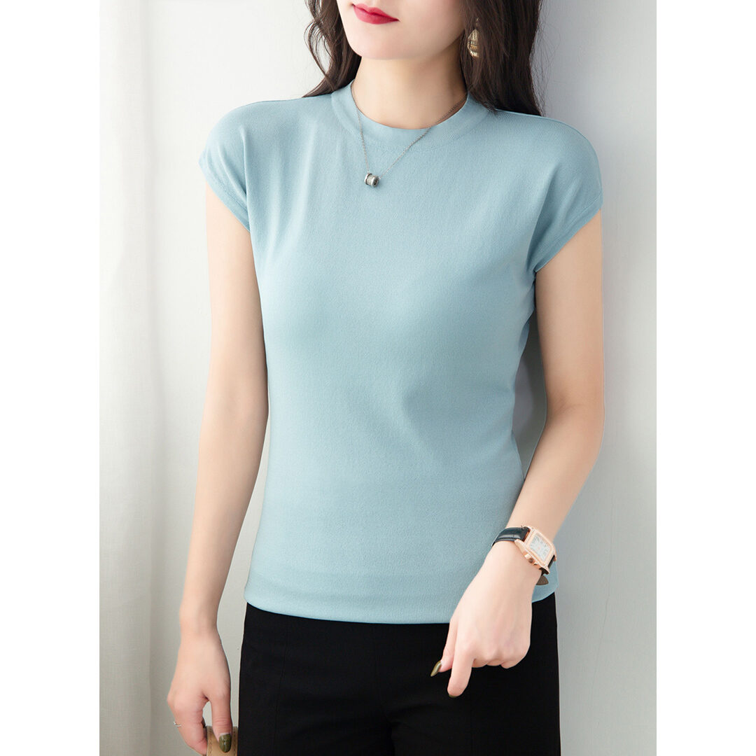 Ice Silk Short-Sleeved T-shirt for Women Summer 2021 New Loose Half High round Neck Sleeveless Sweater Solid Color Top Thin