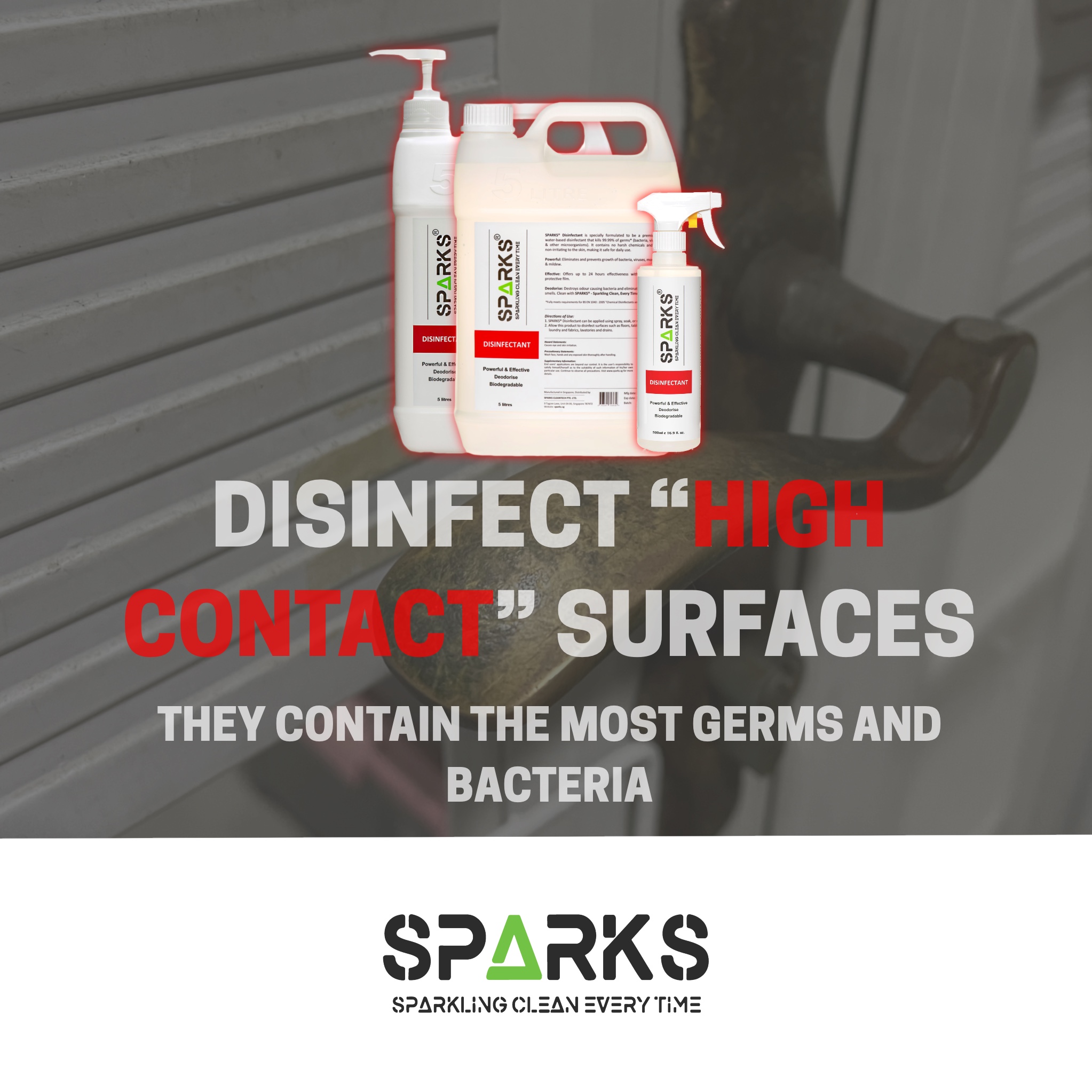 Sparks Disinfectant (5 Litres) with Pump Dispenser Top (inclusive of 500ml plastic spray bottle) - Premium Water Based Sanitiser (Sanitizer) with Multi-Action and Broad Action Kill Against Bacteria, V