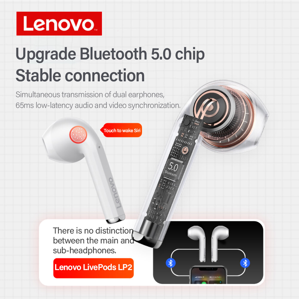 Lenovo LP2 TWS Bluetooth Earphone Sport Gaming True Wireless Bluetooth Earbuds Touch Control for OPPO VIVO Samsung Mobile Phone