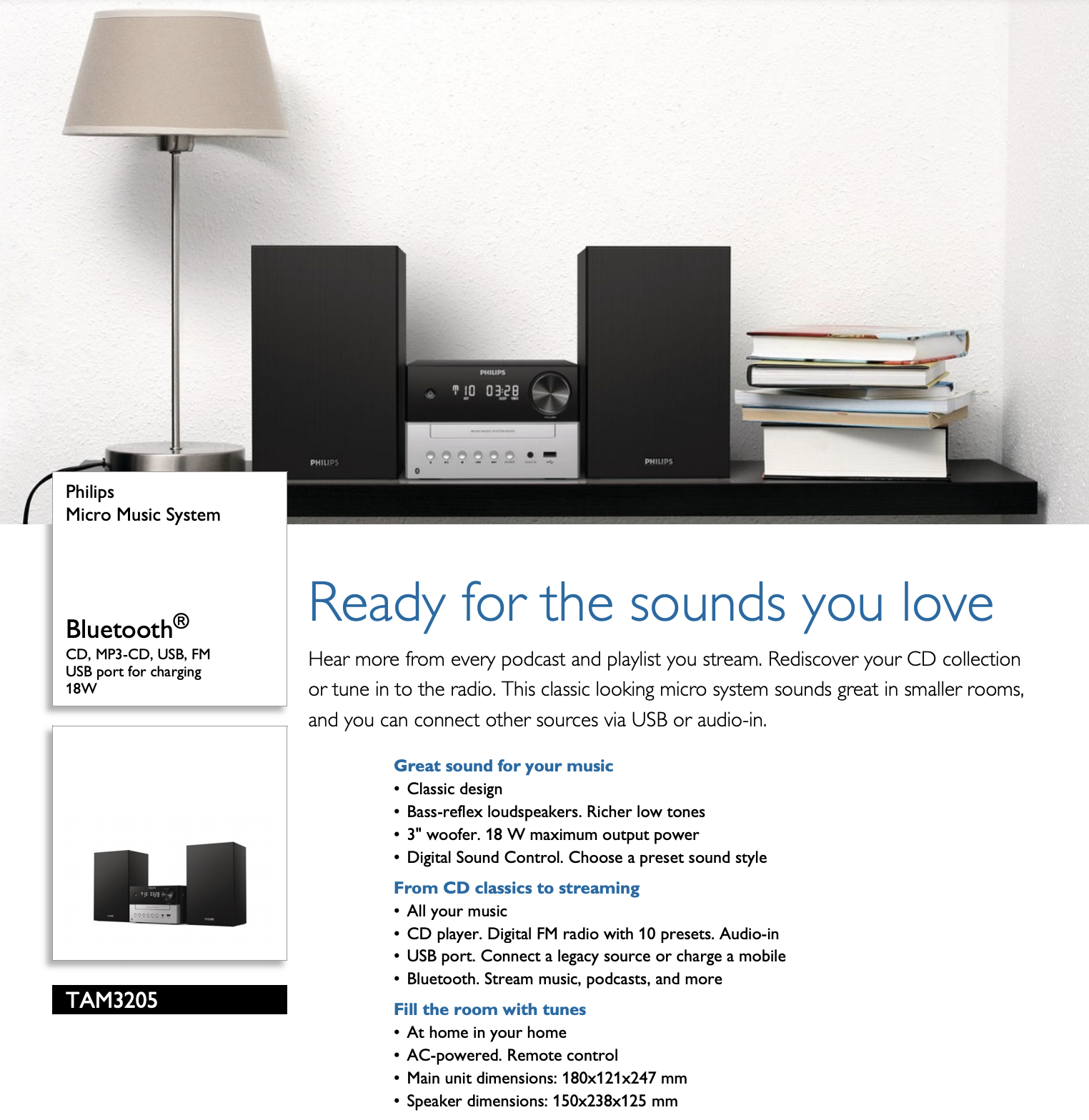 Philips TAM3205/12 Micro Music System | Bluetooth, CD, USB, Radio