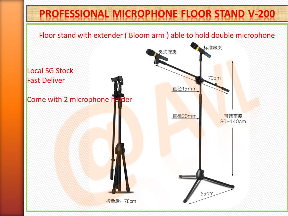 Professional Microphone floor stand , Bloom Arm included , able to hold up to 2 microphone , come with 2 microphone holder , LOCAL SG STOCK , FAST DELIVERY