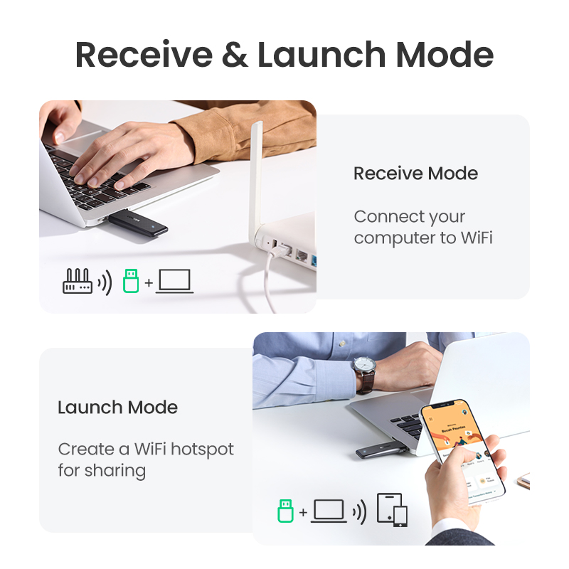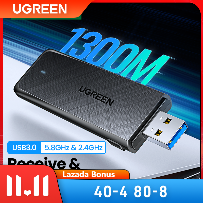 UGREEN Wifi Adapter 1300Mbps 5Ghz & 2.4GHz Dual Band USB Wifi for Laptop Desktop USB Ethernet Adapter Network Card Wifi Dongle