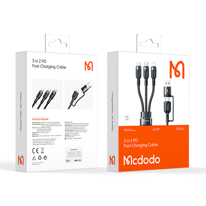 Mcdodo 100W 3in2 USB C Cable For Lightning iPhone 13 12 11 6A Fast Charger Cord Micro USB Type C Cable For Samsung Huawei Xiaomi