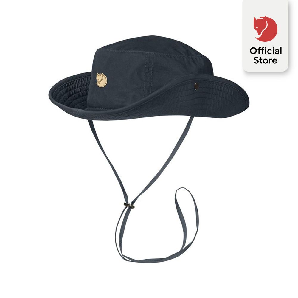 Wide-brimmed sun hat in fast-drying, cool G-1000 Lite. Gives excellent sun protection, both for the face and neck, when hiking, paddling or otherwise outdoors. Soft brim that can be folded up at the sides and held in place with press buttons. The adjustable chin strap in G-1000 keeps it in place when the wind picks up. Fjällräven logo in leather at the front.