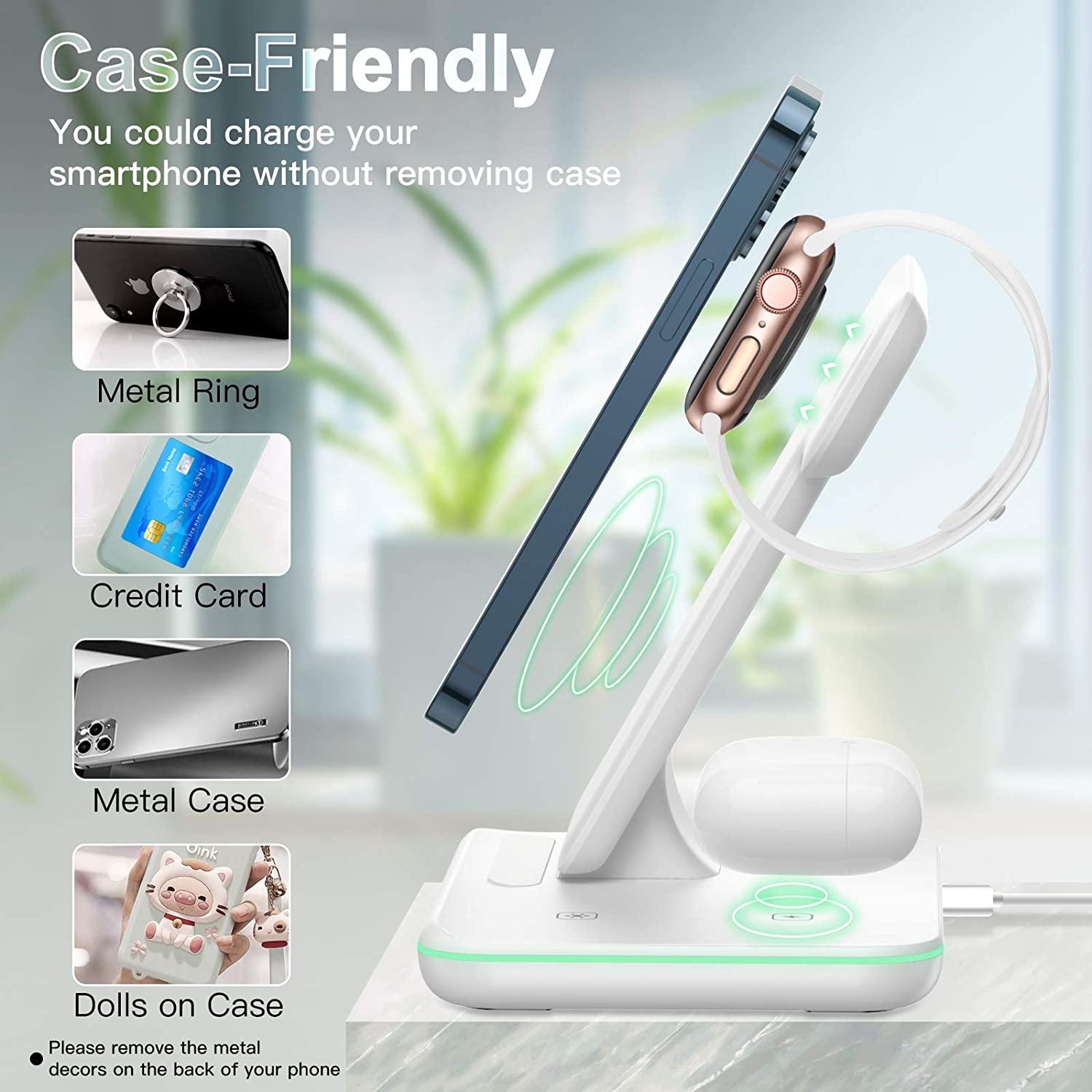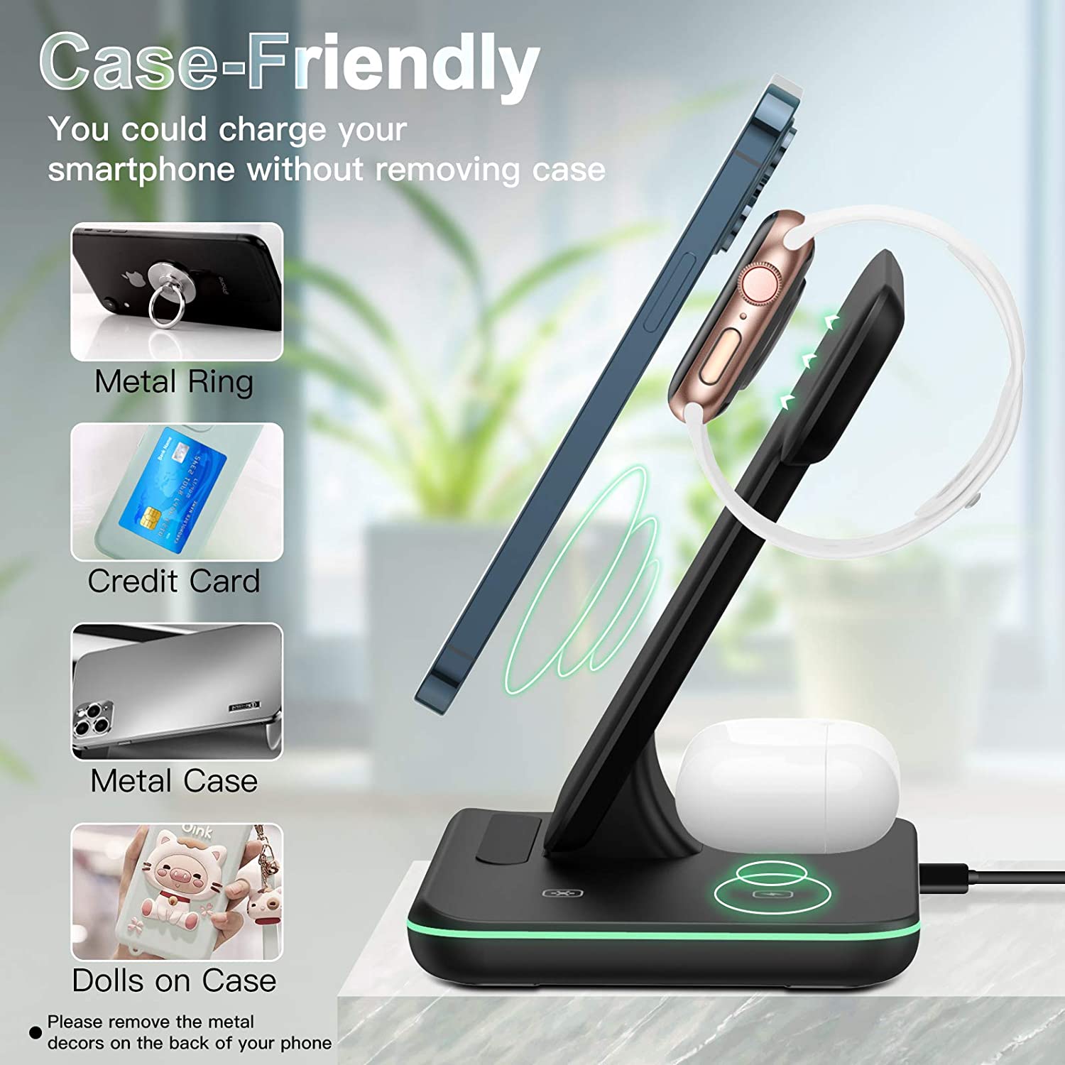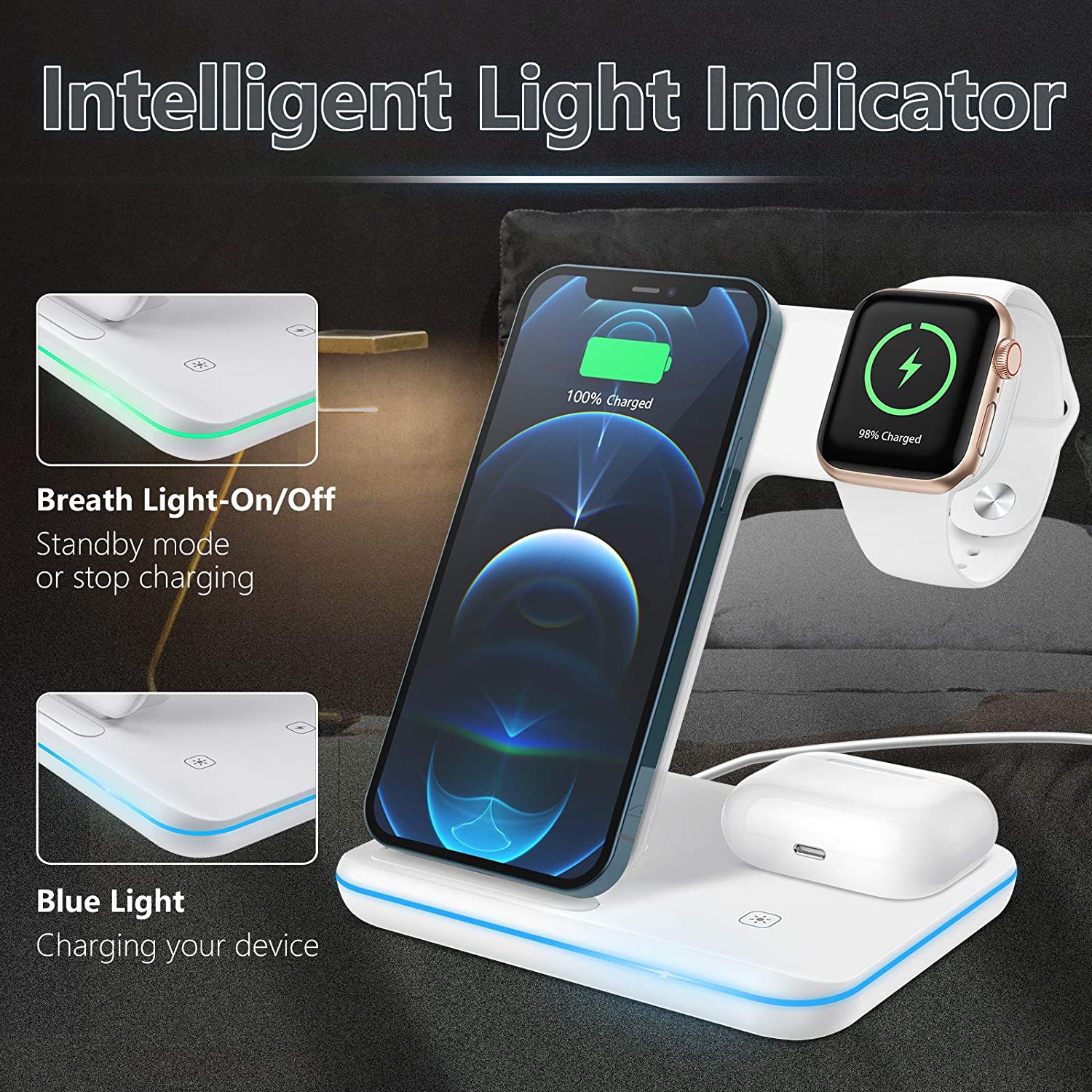 DESKTRON 4 IN 1 Wireless Charger. 15W Qi Fast Charging Station. Headphone Display Rack Compatible for iPhone 14, AirPods iWatch