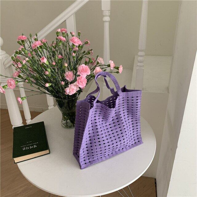 Casual Hollow Knitted Large Tote Bag Crochet Women Handbags Handmade Woven Summer Beach Bags Big Shopper Purses 2022 Female Bag