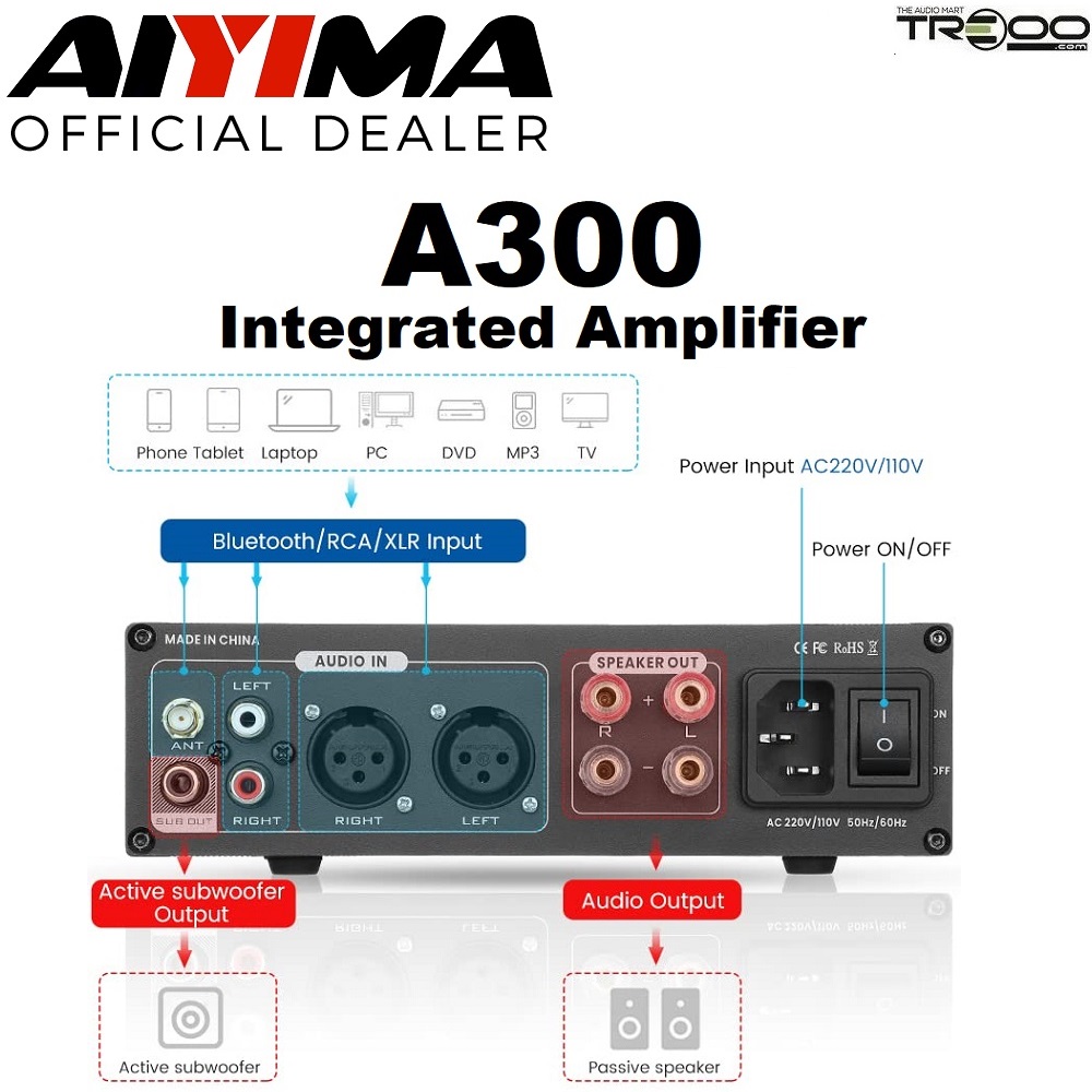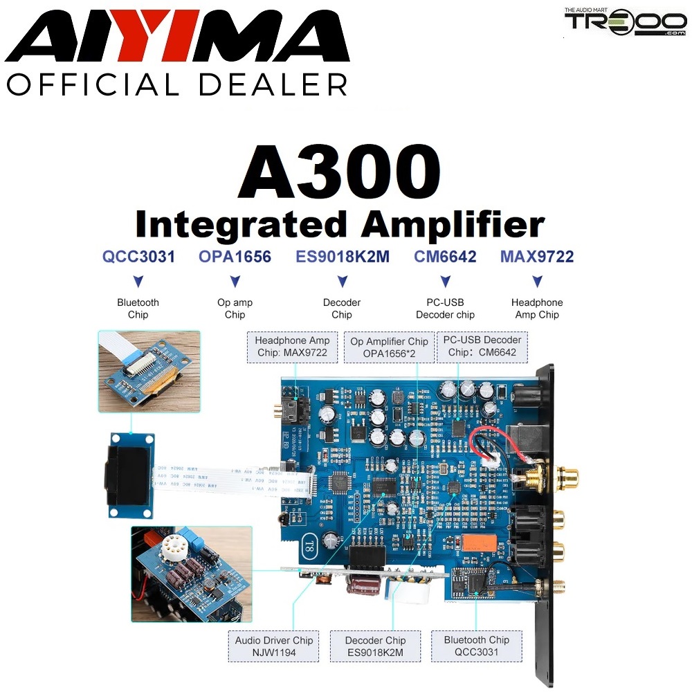 AIYIMA A300 Wireless Bluetooth Receiver/Streamer, USB Integrated Amplifier