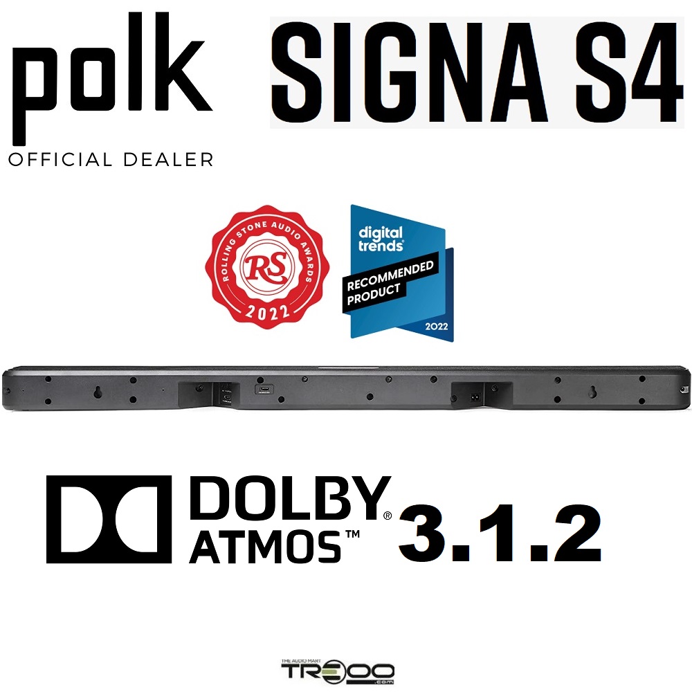 Polk Audio Signa S4 3.1.2 Dolby Atmos Wireless Bluetooth Soundbar with Wireless Subwoofer