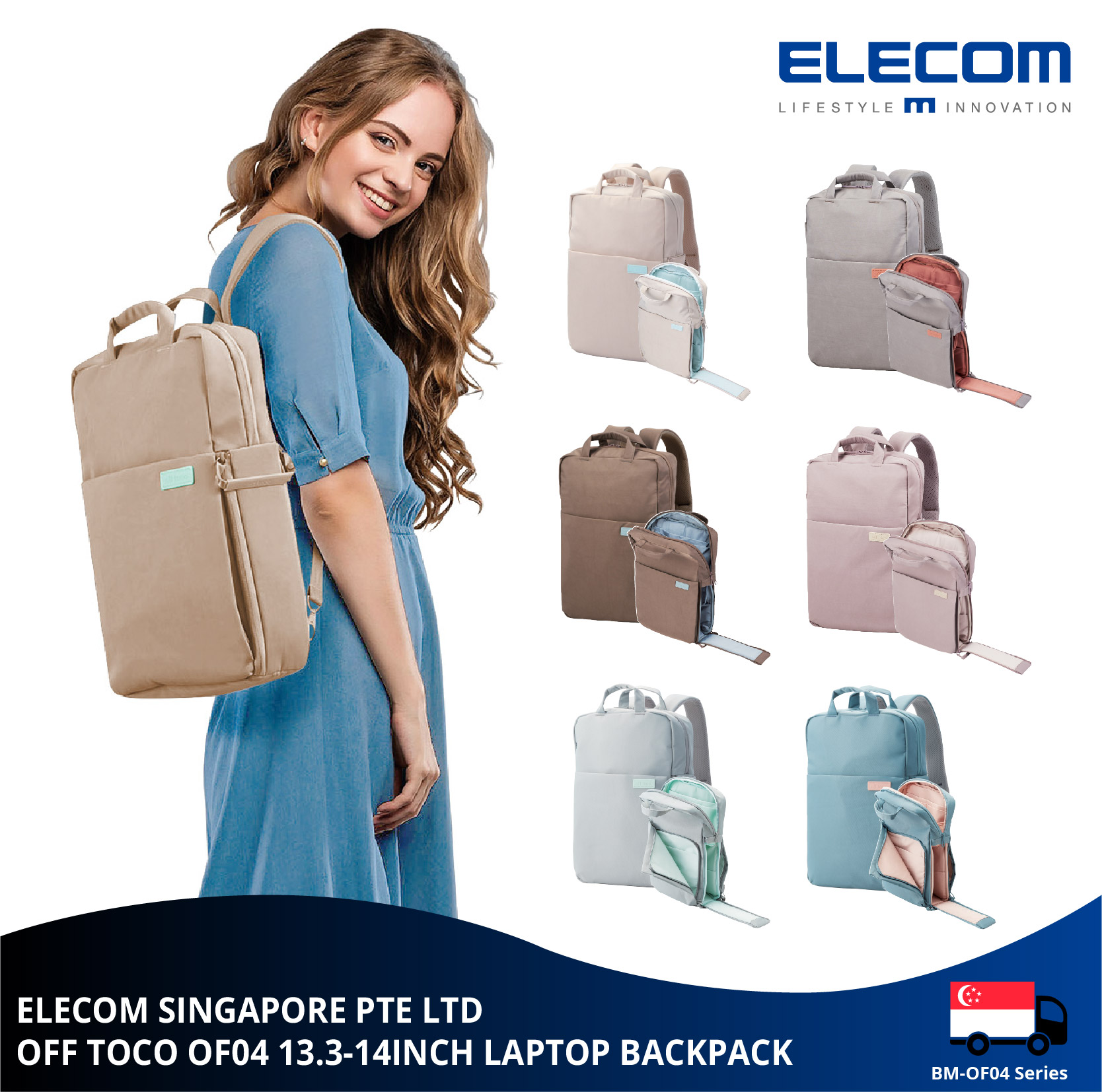 ELECOM OFF TOCO 14inch Laptop Backpack / School Bag/ Casual/ Office/ Water-Repellent/ Travel/ Fashion/ Style/ Unisex/ For Man or Women (13.3inch Laptop)/ BM-OF04 Series