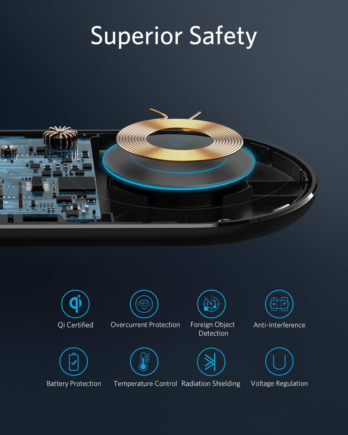 Anker PowerWave 10 Dual wireless charging Pad, Qi Certified 7.5W Compatible iPhone XS Max/XR/XS/X/8/8 Plus, 10W Charges Galaxy S10/S10+/S9/S9+/S8/S8+/Note 8, and 5W Charges All Qi-Enabled Phones, DC A
