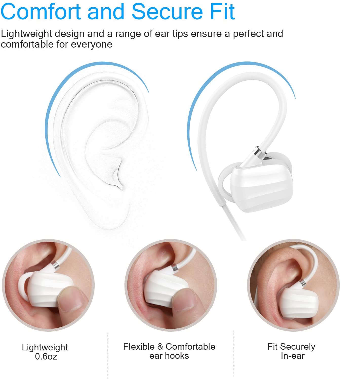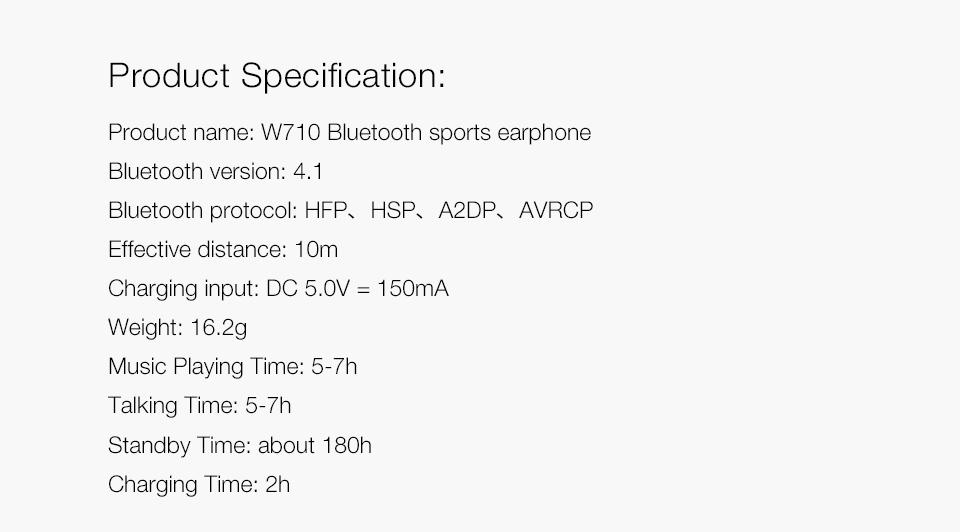 GGMM W710 Wireless Bluetooth Sport Earphone With Remote Control Microphone Black White Noise Reduction In Ear Hook Noise Cancelling Comfortable 7Hrs Waterproof High Quality Sound Earbud Hook HD Clarit