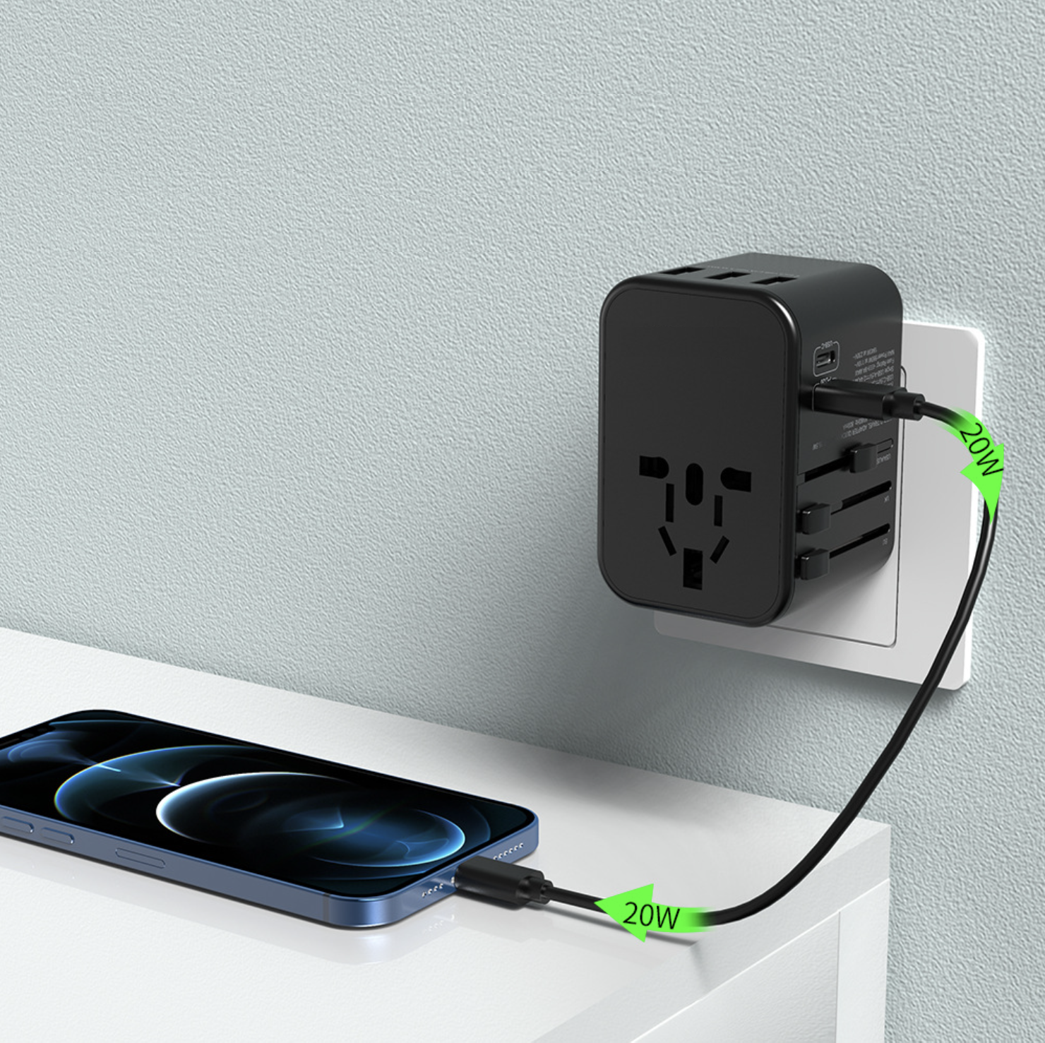 【Local Seller】Universal Travel Adapter with 3 USB Port + Dual Type-C Port Wall Charger Plug High-power charging universal conversion socket PD 20W PD AND QC3.0