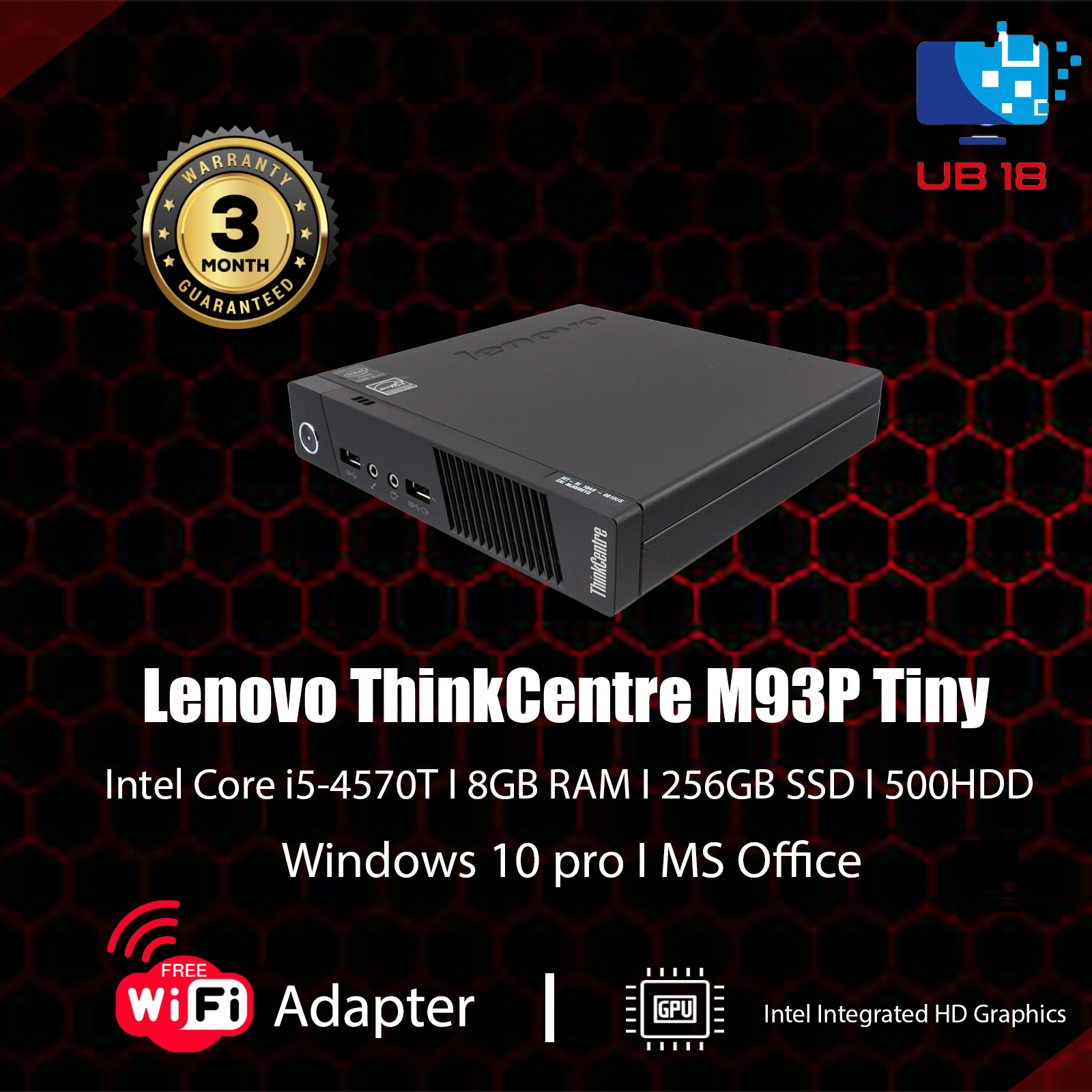Lenovo M93p mini desktop, i7 4th Gen 8GB Ram, 256gb new ssd , windows 10, ms office (Free wifi adaptor and Docking Station)